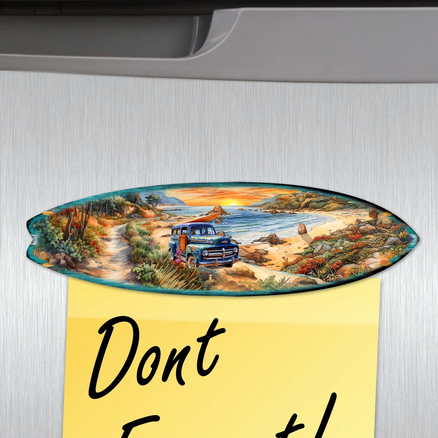 Upgrade your coastal Decor with these beautiful Ocean View Surfboards Decorative Wooden Magnets by G. Debrekht. This set of 6 magnets adds a touch of seaside charm to any space. Made from high-quality wood, they are both durable and visually appealing. Perfect for those who love the beach or surf culture.