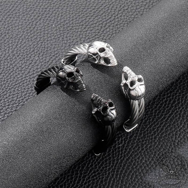 Punk Double Skull Wire Stainless Steel Bracelet