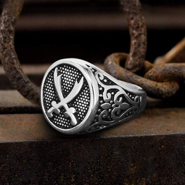 This ring is made of stainless steel with the theme pattern of a double knife that creates a look that is both elegant and rugged, making it great for any navy fans. Men's stainless steel ring, marine anchor ring. It is a comfortable yet masculine ring, one that you will not be disappointed with. Get yours today!