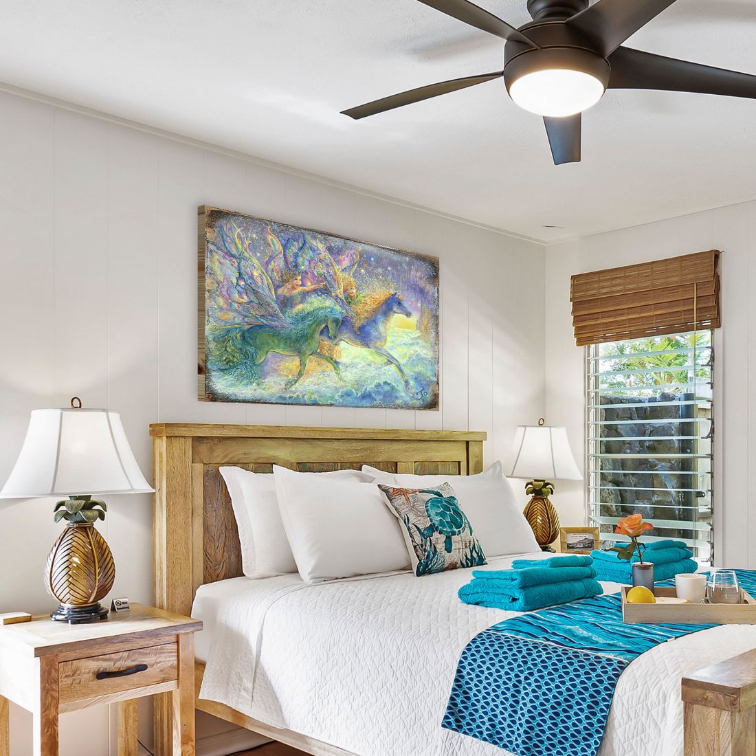A stylish way to highlight your home is to showcase Distinctive Art designed by Josephine Wall. The natural wood grain shows through the Wood Wall Art Decor to give the Art a unique look. Visit us for wall art from the world greatest artists - Race You to Fairyland Fantasy Art from our Home and Living collection, 100% in the USA.