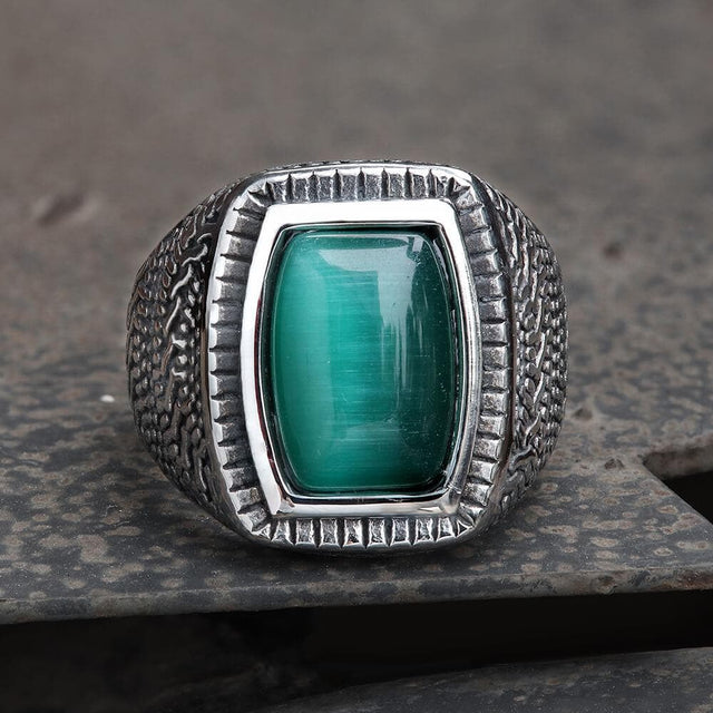 This gem themed ring is exactly what you need to complete your accessory look. It is a beautiful ring made of stainless steel and stunning green cat's-eye that creates a look that is both elegant and rugged. The detailed patterns on both sides show a vintage style. Solid and durable, we provide first-class jewelry that won’t lose its luster over time. Get yours today!