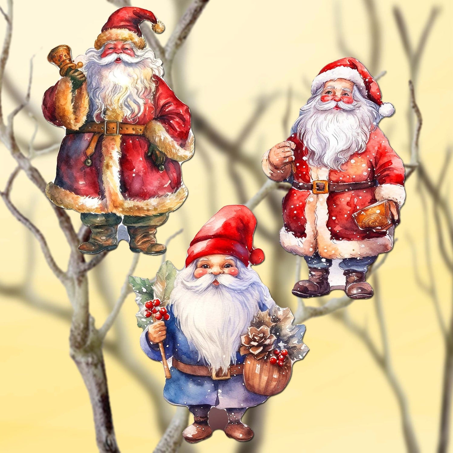 Santa Decorative Wooden Clip-on Ornaments Set of 3 by G. Debrekht - Christmas Decor - 8091009C-S3