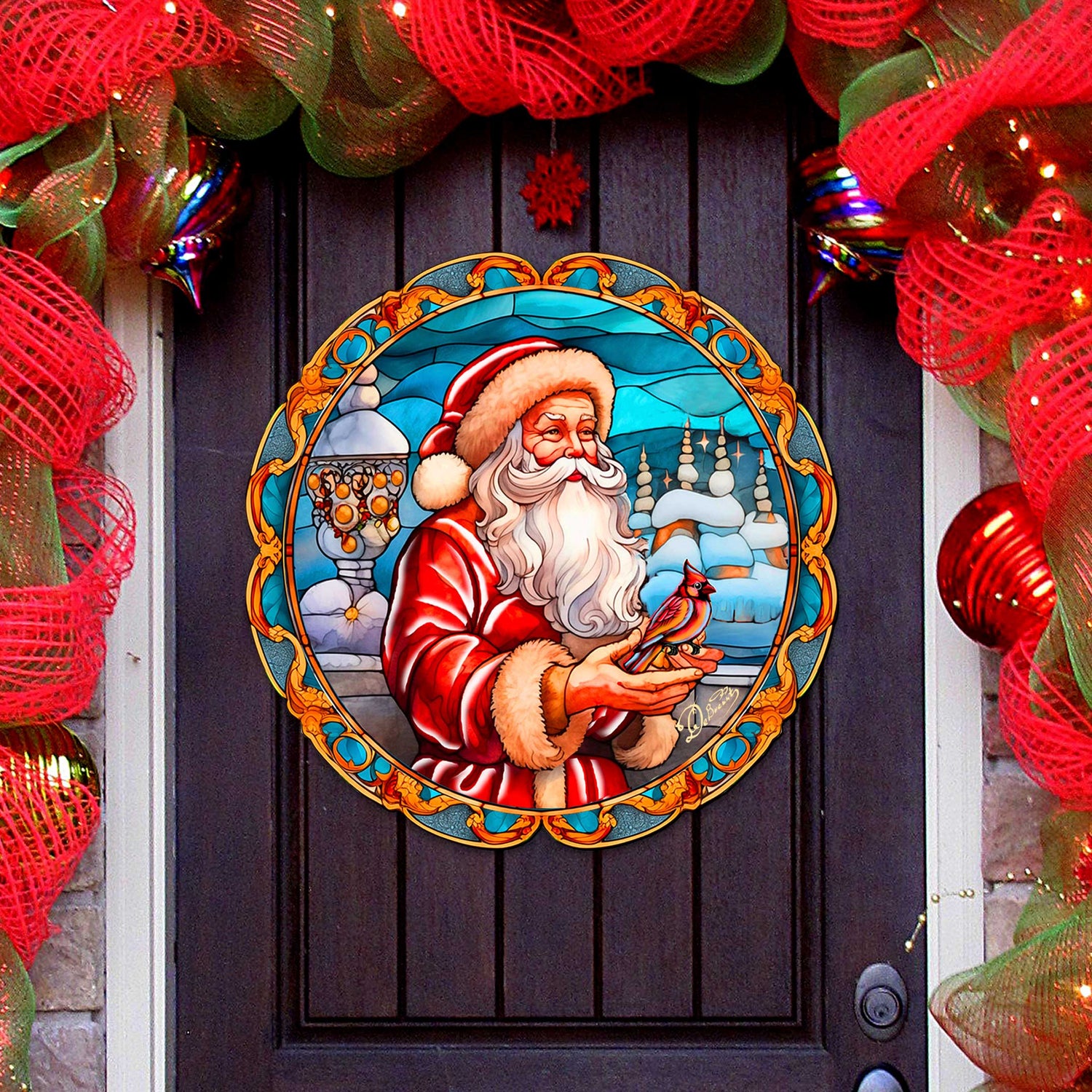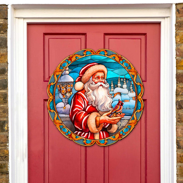 Santa with Red Cardinal Holiday Door Decor by G. Debrekht - Santa Snowman Decor - 8652807H