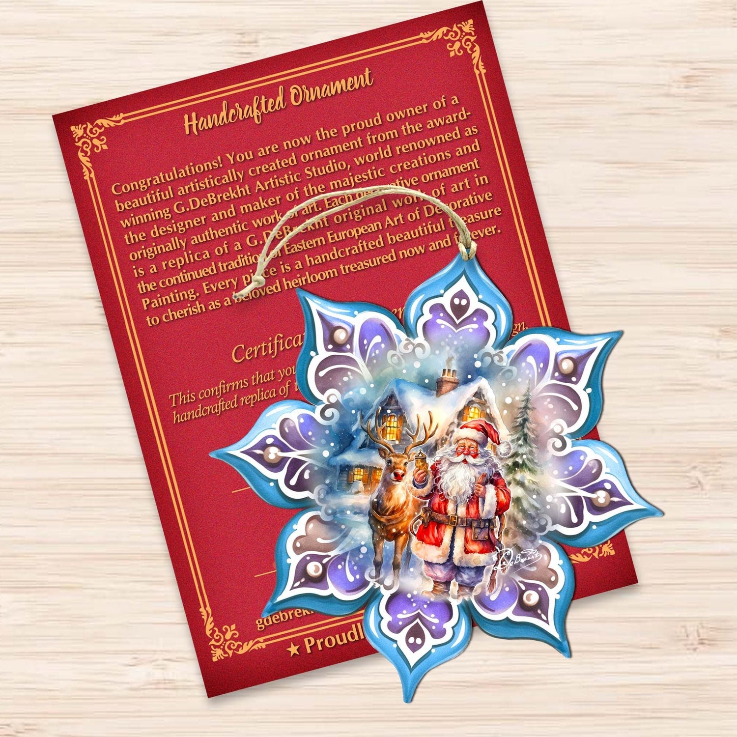 Santa with Reindeer Snowflake Wooden Ornaments by G. Debrekht - Christmas Santa Snowman Decor - 8688405