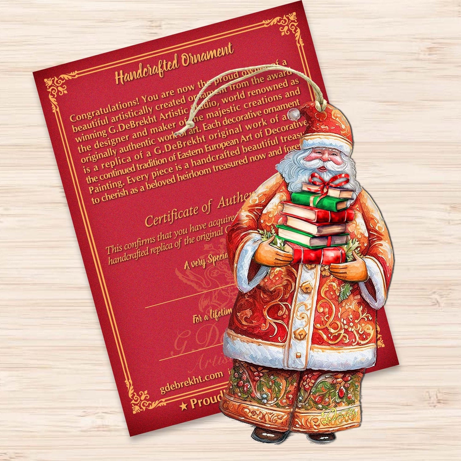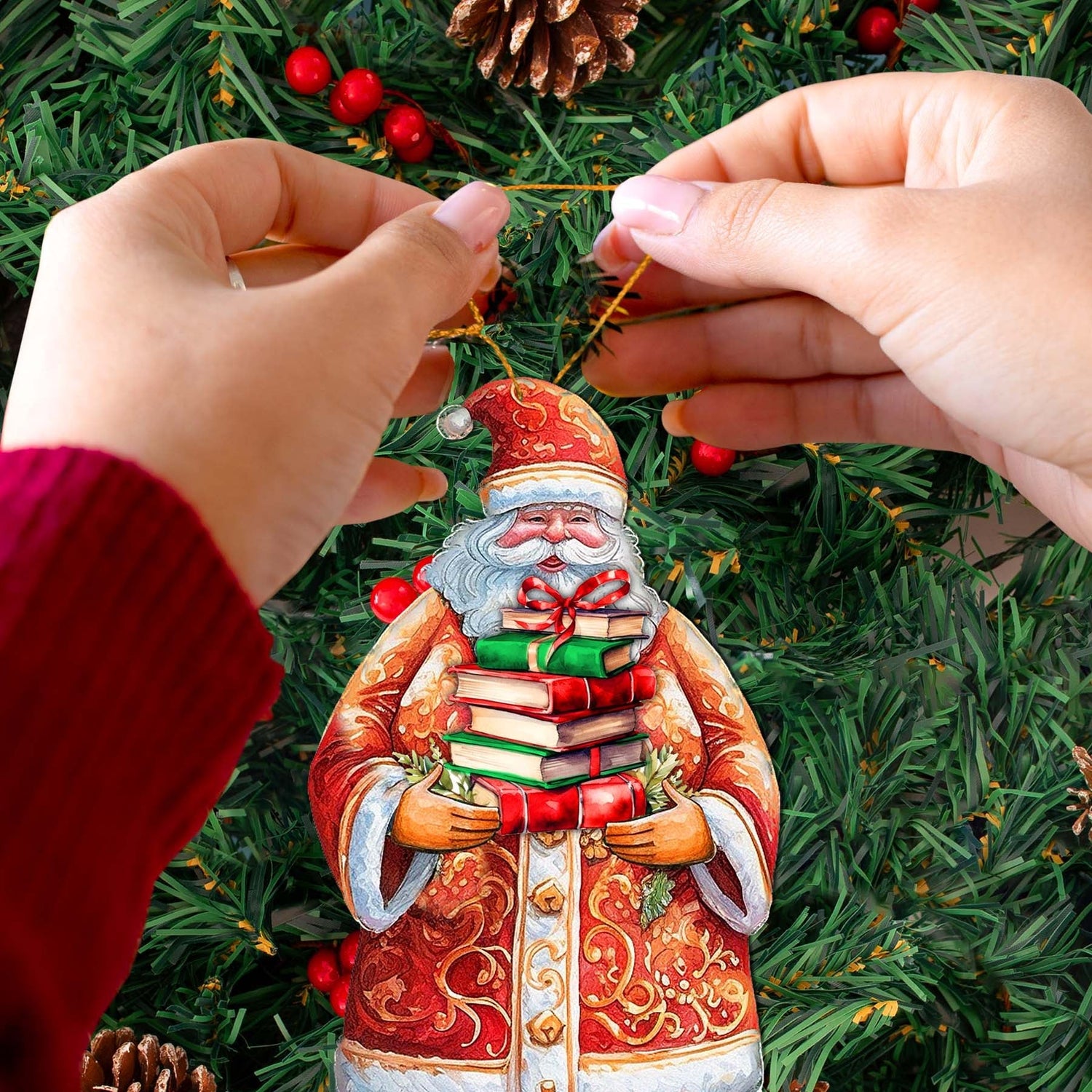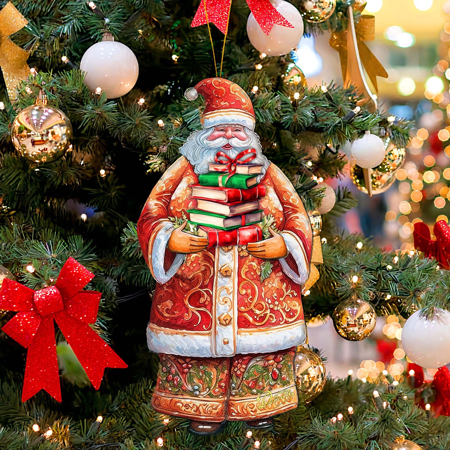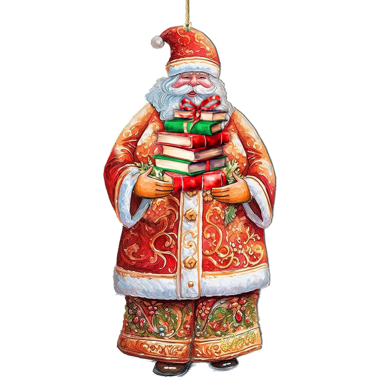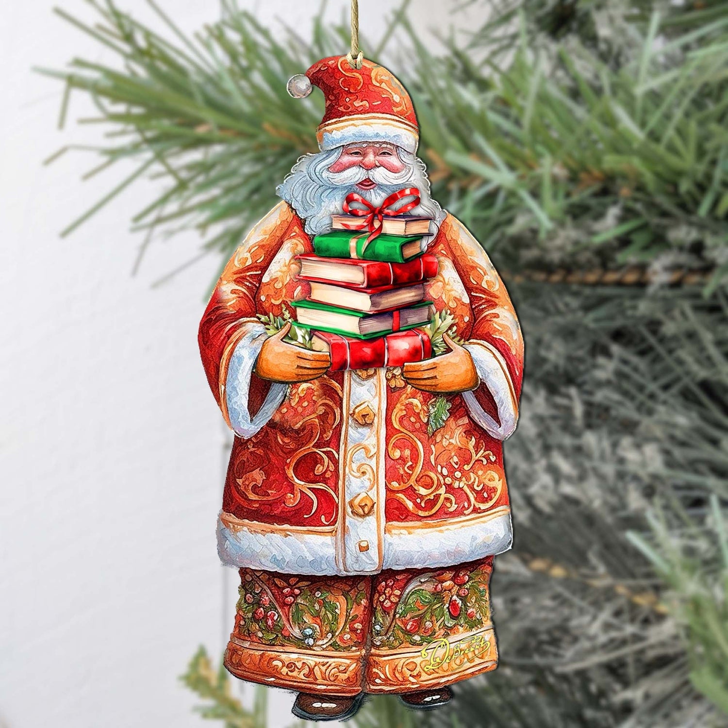 Santa's Book Collection Wooden Ornaments by G. Debrekht - Christmas Santa Snowman Decor - 8691405