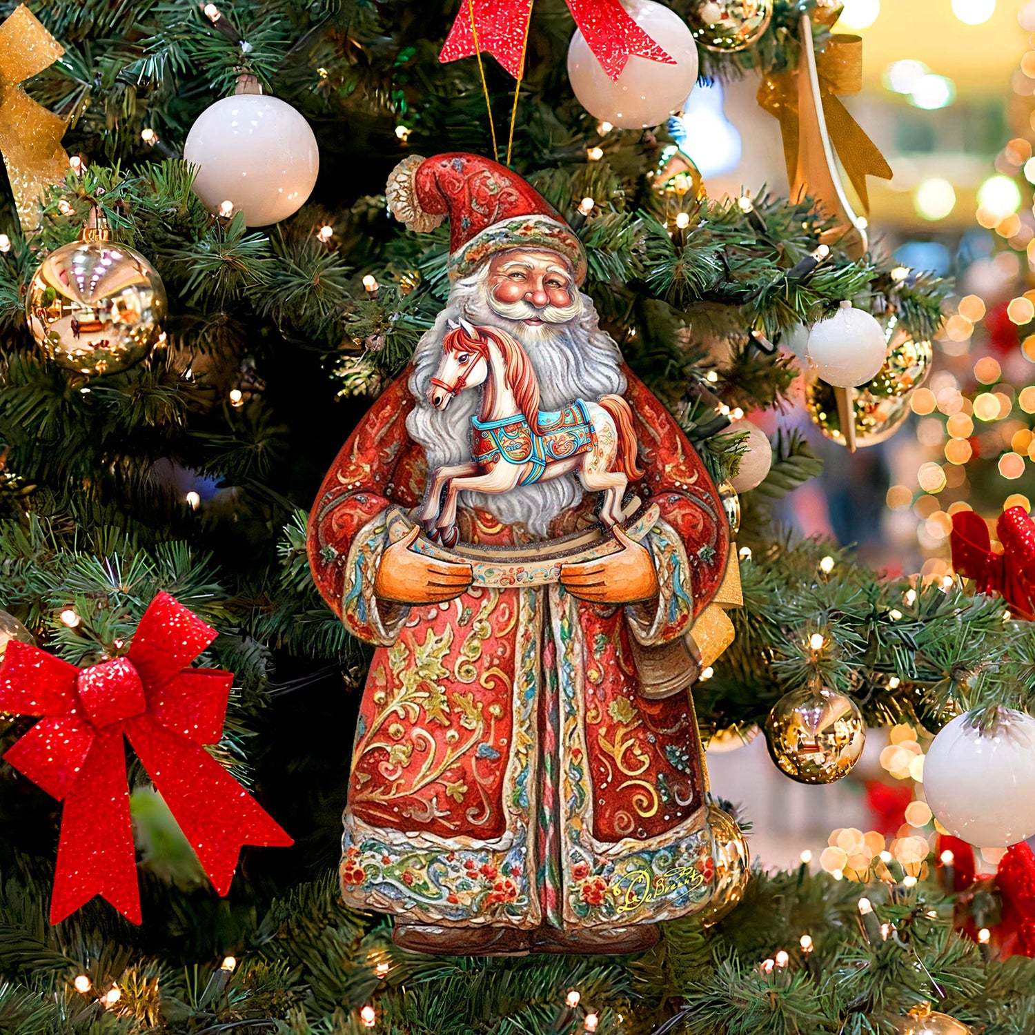 Santa's Nostalgic Rocking Horse Wooden Ornaments by G. Debrekht - Christmas Santa Snowman Decor - 8691414