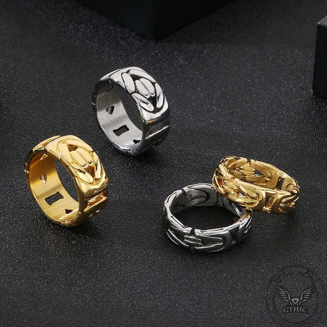 This stainless steel ring features a simple V-shaped emperor chain design, perfect for couples looking for a unique and playful piece of jewelry. Made with durable materials, this ring is a stylish addition to any outfit and a great way to show off your love and connection.