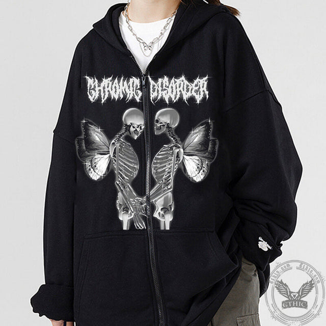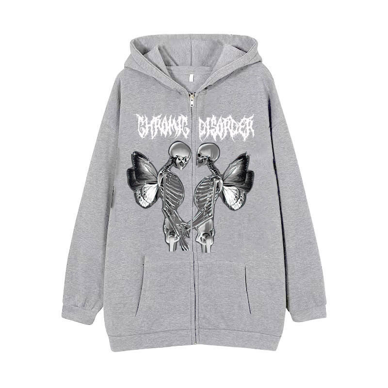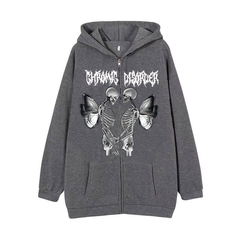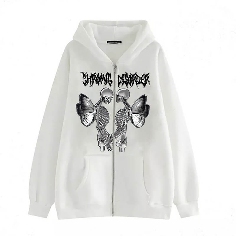 Skull Butterfly Polyester Hoodie Coat