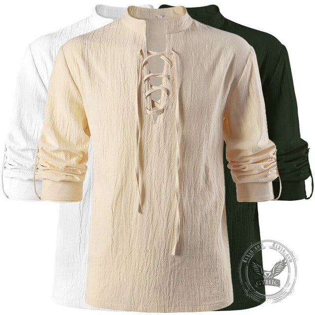 Elevate your fashion game with our Solid Color Stand Collar Lace Up Long Sleeve Shirt. Crafted from high-quality polyester, this versatile shirt combines comfort with style, making it a must-have in your wardrobe. Whether you're dressing up for a special occasion or keeping it casual for everyday wear, this shirt offers the perfect blend of sophistication and comfort. Make a bold fashion statement and express your unique style with our standout lace-up design.
