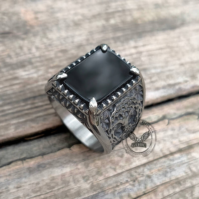 Tree Of Life Onyx Stainless Steel Viking Ring