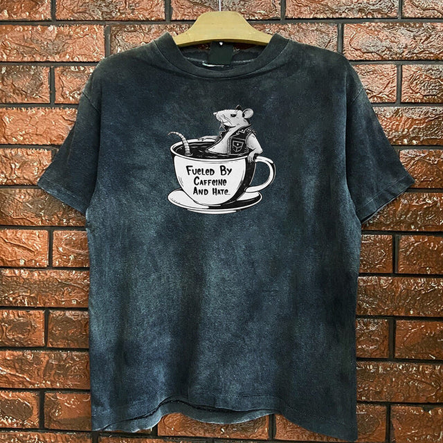 Vintage Washed Fueled By Caffeine And Hate Short Sleeve T-shirt - Black / S (Bust 100 cm) is backordered and will ship as soon as it is back in stock.