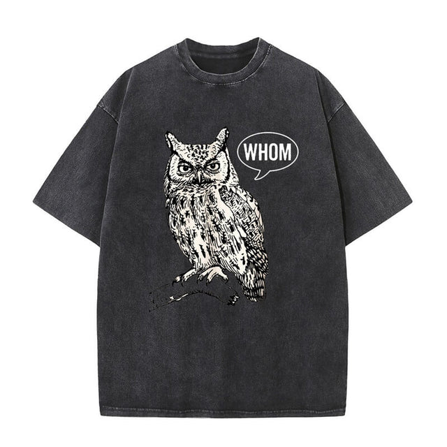 Vintage Washed Whom Owl Print Short Sleeve T-shirt