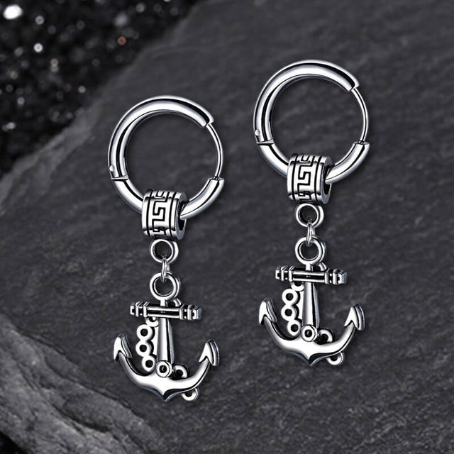 Vintage Wheel Ship Anchor Copper Earrings - Silver / A Pair is backordered and will ship as soon as it is back in stock.