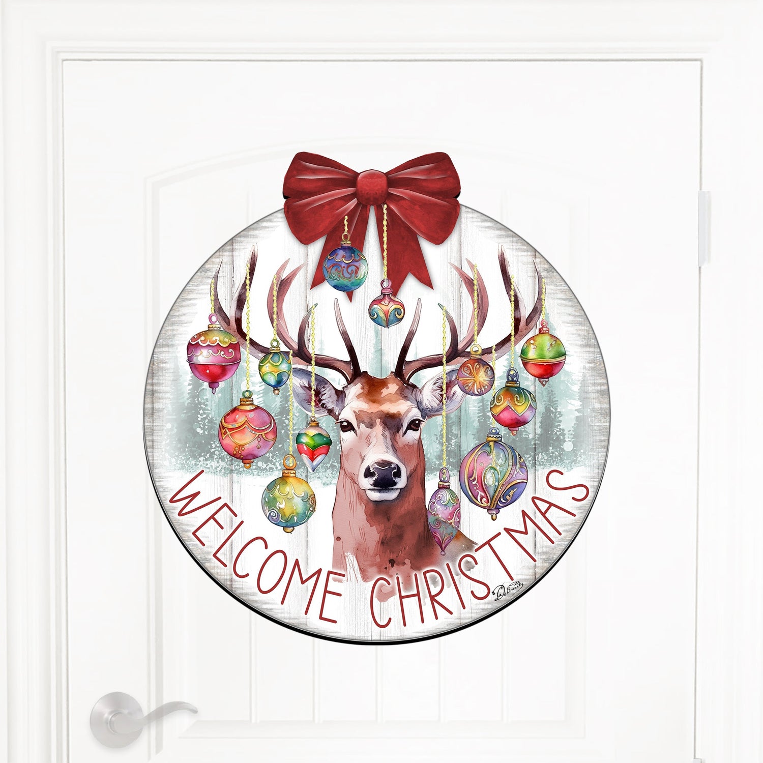 Welcome the holiday season with style with this exquisite Welcome Christmas Front Door Welcome Sign. Handcrafted from wood by G. Debrekht, this decor features a deer in the forest motif with festive Christmas details. Perfect for your porch or front door, this sign will create a unique seasonal look.